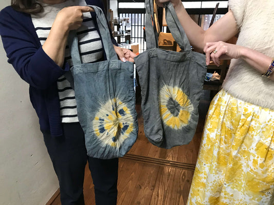 お手軽ベンガラ染めハンカチ・巾着 浸染染め