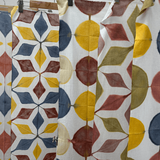生地のたたみ方と板の組み合わせで連続文様を染め上げる浴衣に用いられた染色技法です。