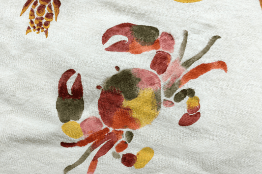 ひとつひとつの工程が手仕事で行われるため、滲みやぼけ、微妙に文様の形が変り偶然に生まれる美学があり、手染めならではの技法です。